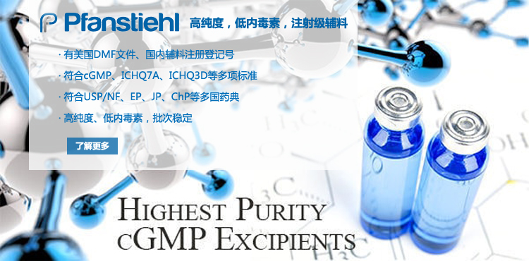 “熱烈祝賀Pfanstiehl的注射級甘氨酸Glycine(G-140)喜獲CDE登記號F20250000403, 這是Pfanstiehl產品獲得的第18個CDE登記號!”甘氨酸在醫藥輔料制劑中應用廣泛,, 可作為緩沖劑,增溶劑,穩定劑等,具有諸多優勢。Pfanstiehl秉承一貫高品質理念,為滿足全球生物制藥行業對于高品質甘氨酸的需求,隆重推出的注射級甘氨酸Glycine (G-140), 具有超高純度,超低內毒素,超低金屬殘留的特點,單獨檢測29種金屬離子,并且新增DNA,RNA,DNA酶,RNA酶和脂肪酶,亞硝酸鹽等多項質量指標的檢測,符合多國藥典規定(USP, EP, BP, JPE, ChP),可用于生物治療性藥物和疫苗的生產。產品信息:· 產品名稱:Glycine, High Purity, Low Endotoxin, Low Metals, USP, EP, BP, JPE, ChP (G-140)· 中文名稱:甘氨酸· 分子式:C2H5NO2· 分子量:75.07 g / mol· CAS號:56-40-6· 產品貨號:G-140產品特點: · 超高純度,超低內毒素,超低微生物含量,超低金屬雜質殘留· 質量指標新增DNA,RNA,DNA酶,RNA酶,脂肪酶和亞硝酸鹽檢測· 符合多國藥典:USP, EP, BP, JPE, ChP· 符合ICH Q3D標準· 符合GMP標準· 已獲DMF和CDE登記號 產品應用:· 緩沖劑· 穩定劑· 增溶劑如果您對Pfanstiehl注射級別Glycine G-140感興趣,歡迎聯系Pfanstiehl 中國區代理商北京西美杰科技有限公司獲得如下詳細的產品概況說明文件和測試樣品。Pfanstiehl Inc.最新產品系列如下,歡迎聯系北京西美杰科技有限公司獲取100g裝免費樣品。北京西美杰科技有限公司為Pfanstiehl中國代理,為客戶提供完善的技術支持與售后服務。歡迎撥打西美杰客服電話400-050-4006或者登陸網站www_xmjsci_com.q0663.com了解更多信息。 更多>